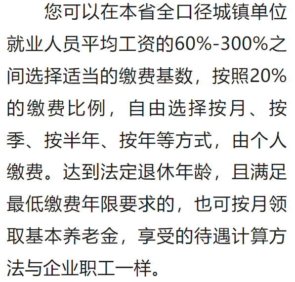 情況二:制度實(shí)施時(shí),您距60周歲的規(guī)定領(lǐng)取年齡不足15年,應(yīng)逐年繳費(fèi)至60歲。也允許補(bǔ)繳,但累計(jì)繳費(fèi)不超過15年。
